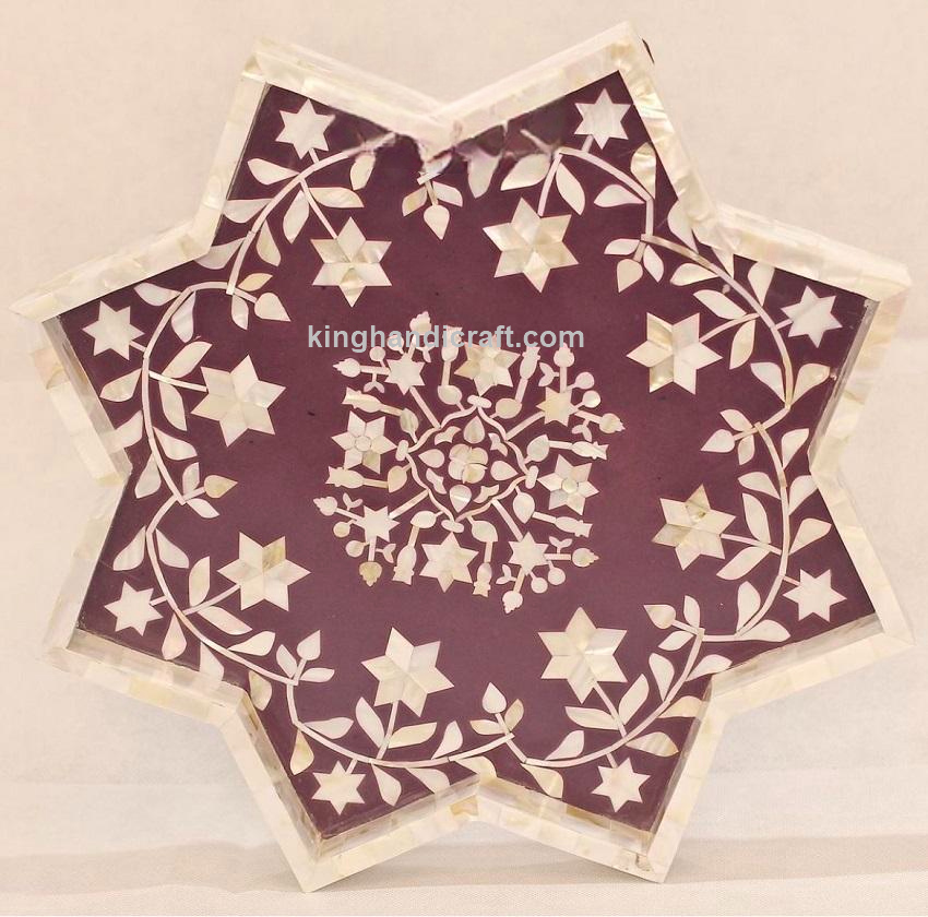 ถาดมุกทำมือสไตล์โบฮีเมียนสำหรับรอมฎอนและอีด | จานเสิร์ฟอเนกประสงค์ ดีไซน์หรูหรา สำหรับอาหารและเครื่องดื่ม อินทผลัม ถั่ว และของหวาน