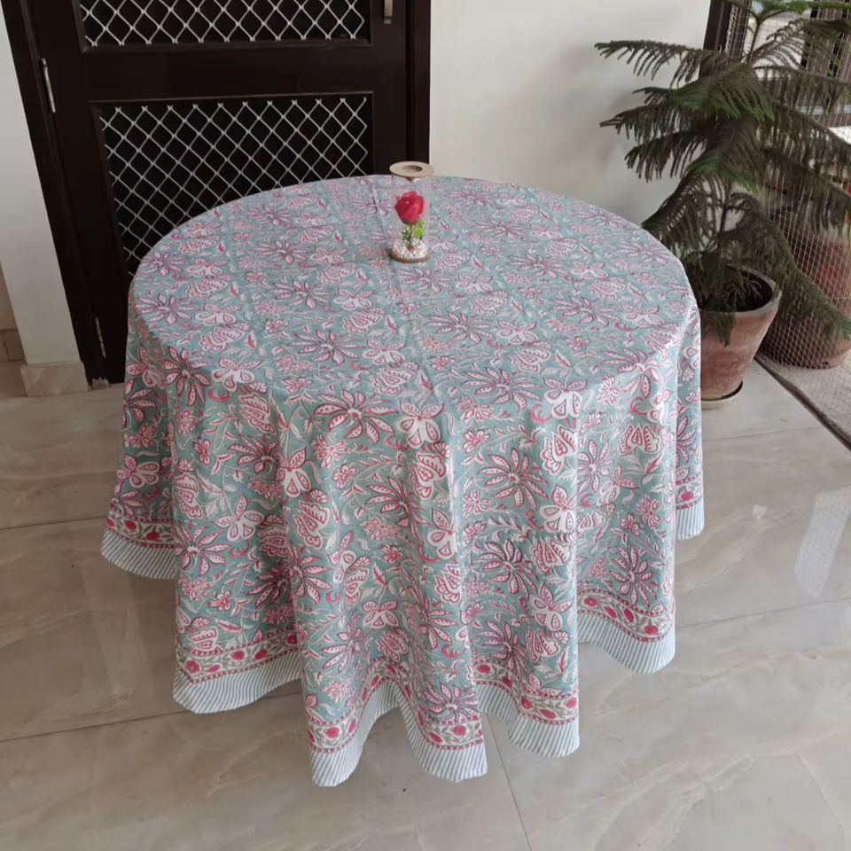 Handmade Multi Pure Cotton Indian Farmhouse Modern Style Table Cover Block Printed Home & Outdoor Wedding Balajee TC-14
