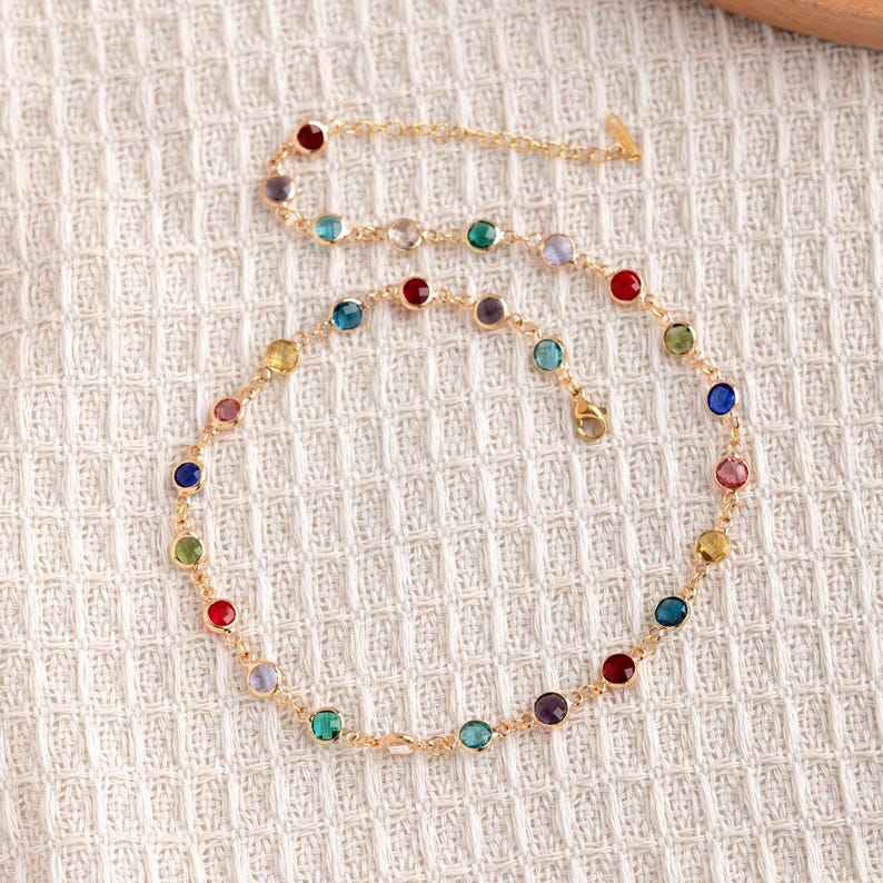 สร้อยคอคริสตัลทำด้วยมือหลากสีเครื่องประดับอัญมณีสีสันสดใสของขวัญสร้อยคอที่ไม่ซ้ำใครสำหรับผู้หญิง