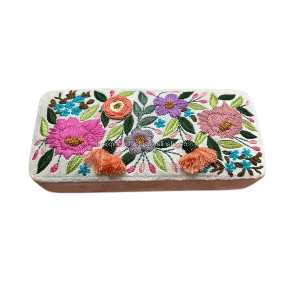 กระเป๋าคลัทช์หนังปักลายหลากสีทำด้วยมือสำหรับผู้หญิงมีฝาปิดและมีซิปกระเป๋าเงินชาติพันธุ์สำหรับงานเลี้ยง