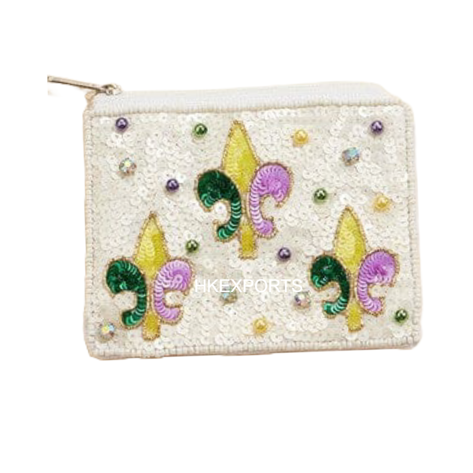 กระเป๋าใส่เหรียญประดับลูกปัดมาร์ดิกราส์หลากสีทำด้วยมือมีซิปปิดอุปกรณ์เสริมซับในโพลีเอสเตอร์สำหรับงานเฉลิมฉลองจำนวน3ชิ้น