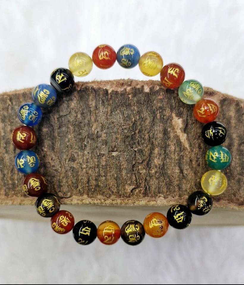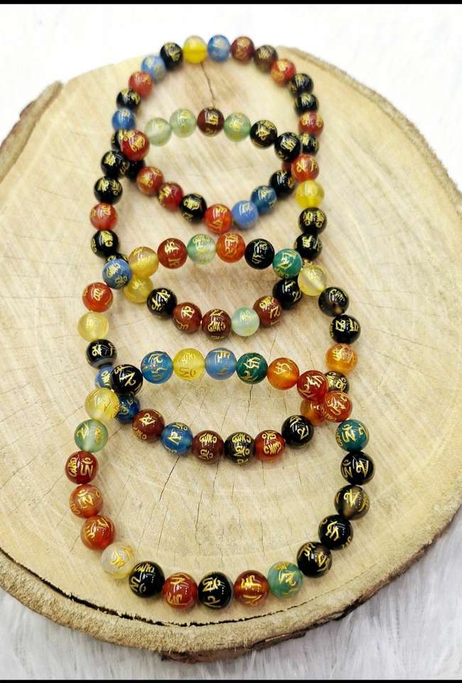 สร้อยข้อมือลูกปัดคริสตัลหลากสีทำมือ ขนาด 8 มม. พร้อมคำมงคลโอม มณี ปัทเม ฮุม เพื่อการฝึกสติและการปกป้องทางจิตวิญญาณ ในราคาที่ดีที่สุด