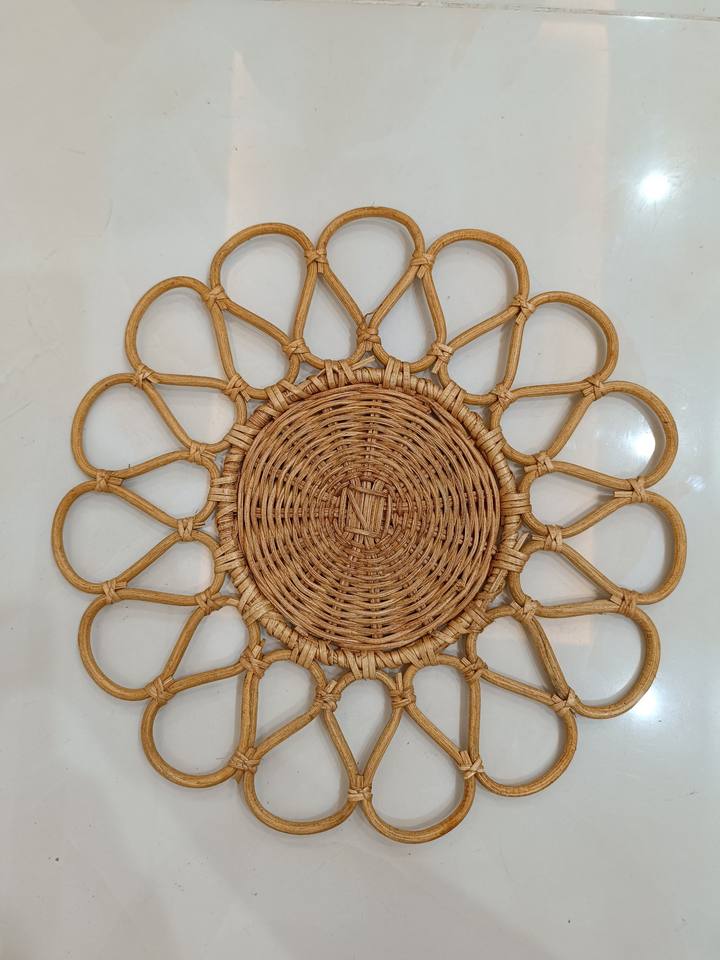 จานหวายทรงกลมหลากสีทำด้วยมือมีดีไซน์ดอกไม้ยกระดับแท่นชาร์จหวายหลากสีสำหรับรับประทานอาหารของคุณ
