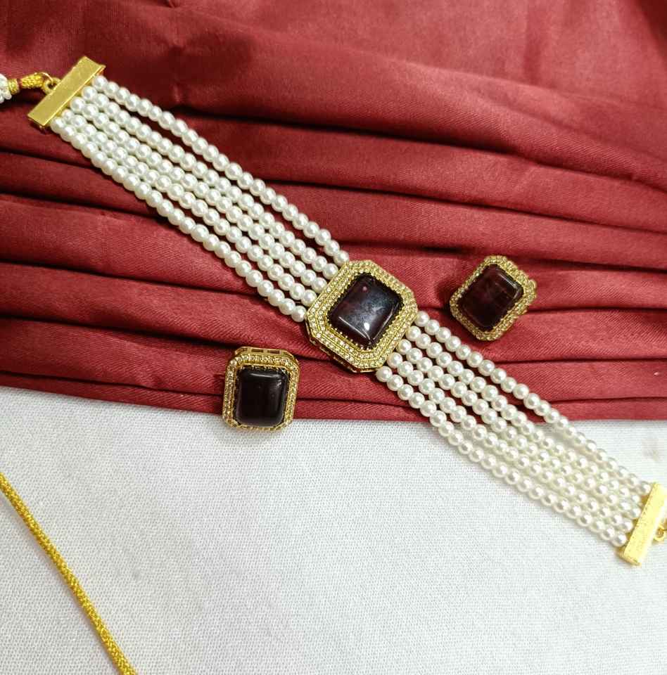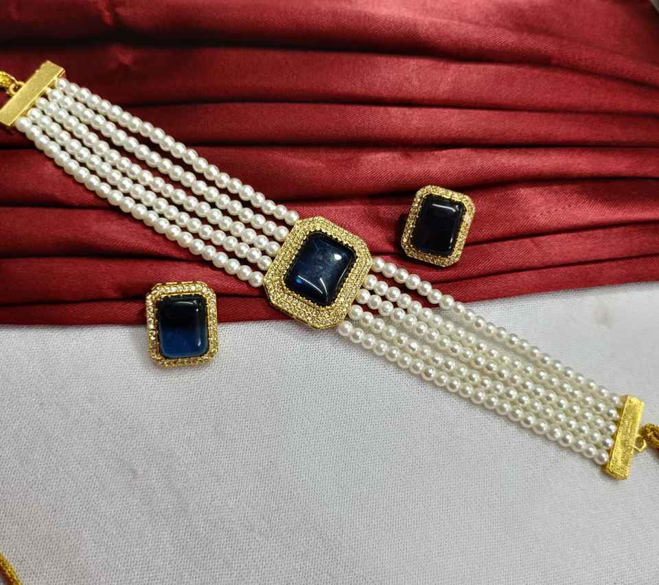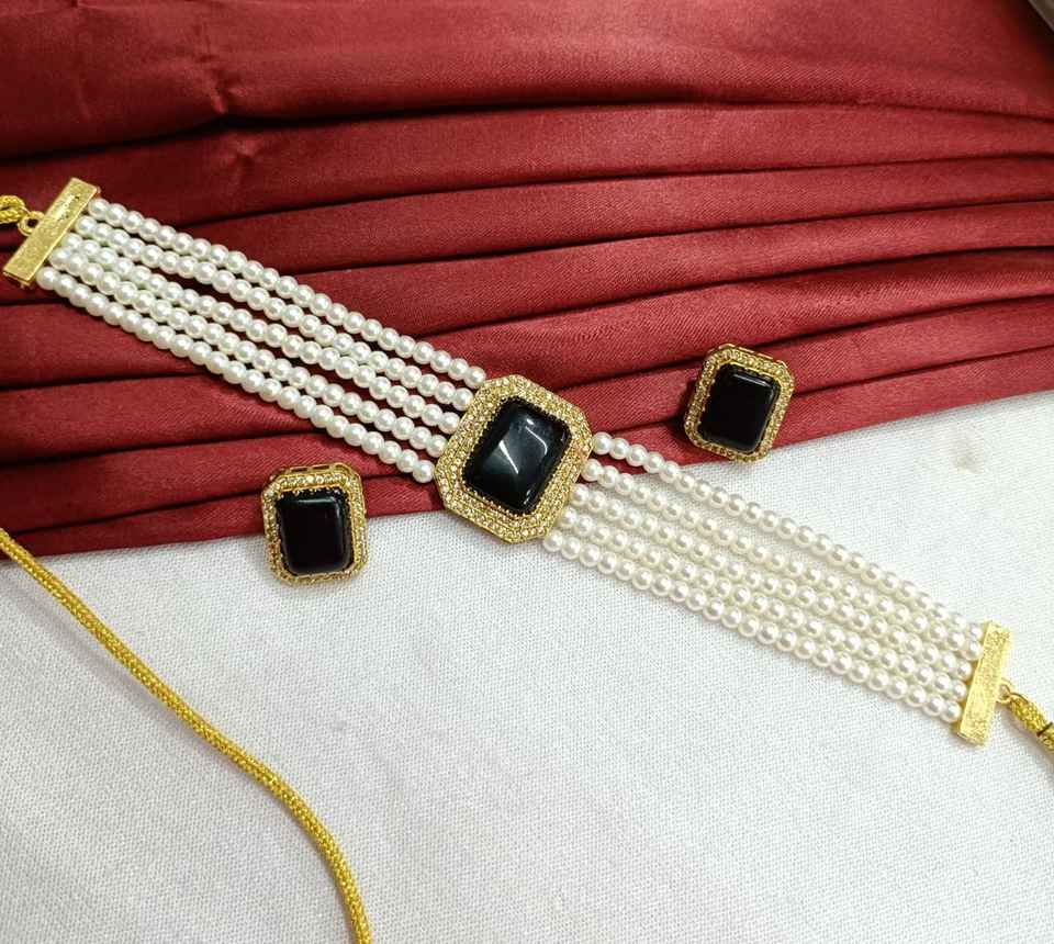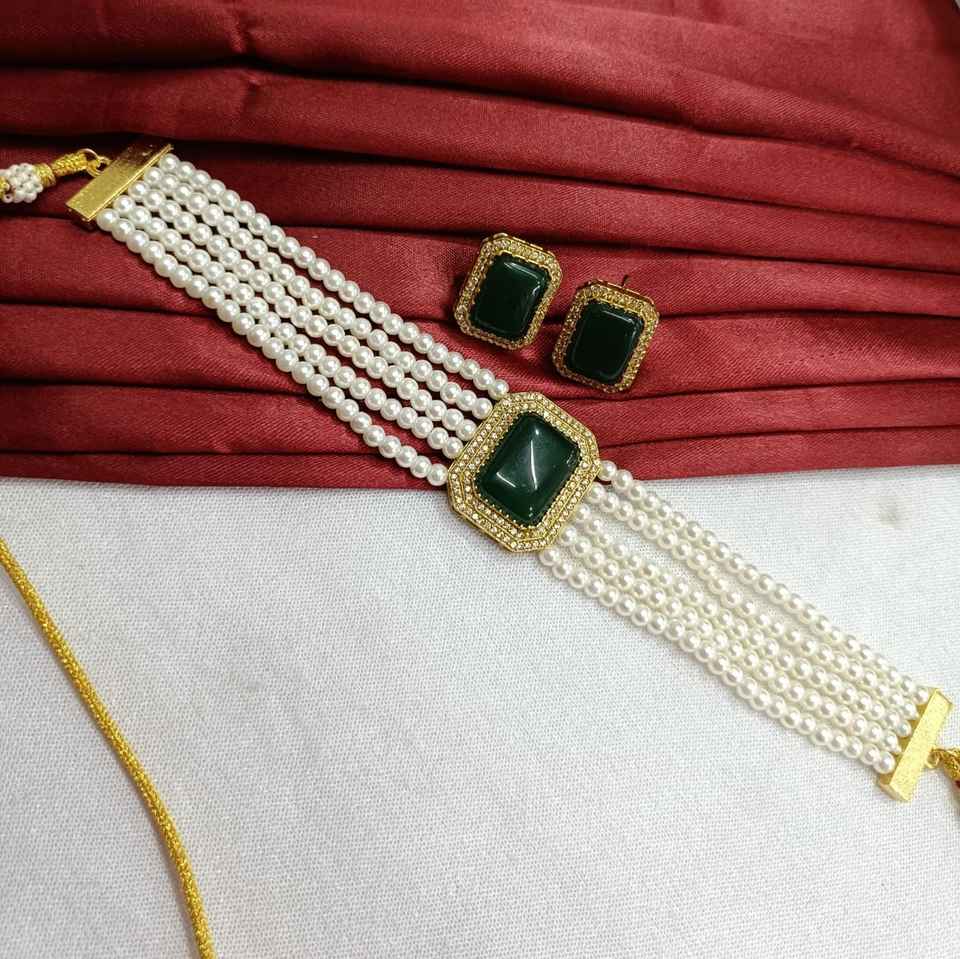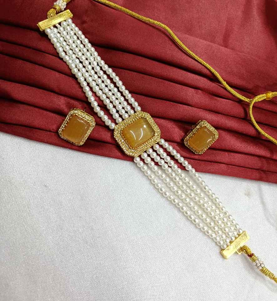 Handmade Multilayer Choker Necklace Set White Pearls & Stone for Weddings Engagements Anniversaries Brass Material Gift