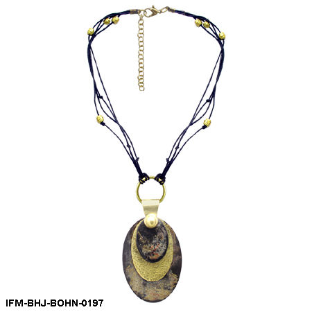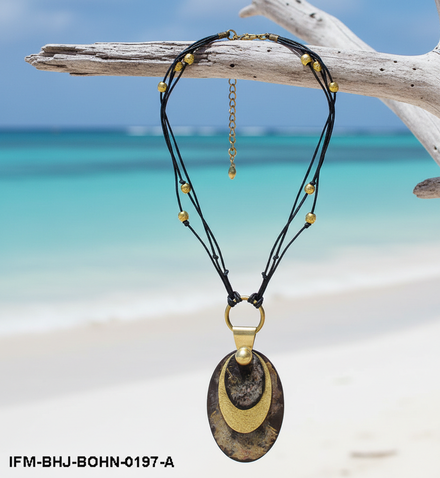 จี้เขาควายแบบทำด้วยมือทำจากทองเหลืองและด้ายฝ้ายทอลูกปัดโลหะ