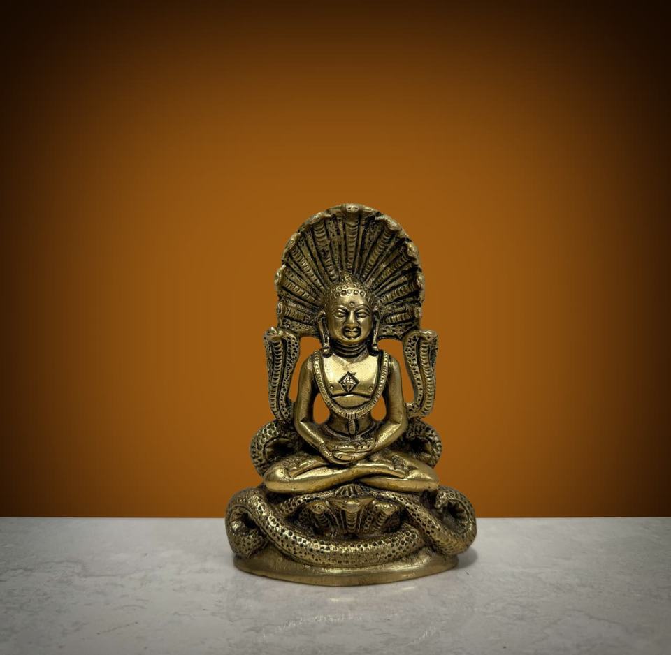 งานหัตถกรรม nirmala ทำด้วยมือศิลปะตกแต่งทองเหลืองพระพุทธรูปนั่งอยู่ใต้กระโปรงหน้ารถรูปปั้นบนโต๊ะ-ของขวัญตกแต่ง