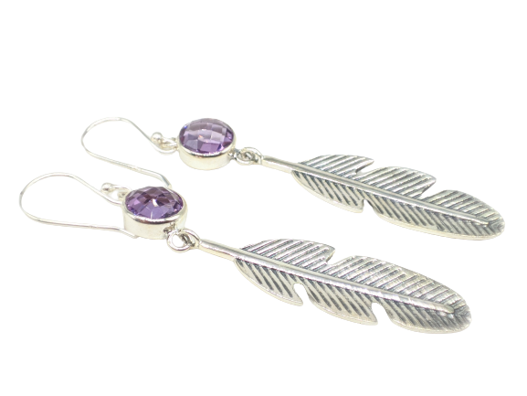 ต่างหูห้อยทำมือจากอเมทิสต์ธรรมชาติ เงินแท้ 925 เครื่องประดับพลอยแท้สำหรับผู้หญิง ขายส่ง สไตล์วินเทจ แฟชั่นงานแต่งงาน