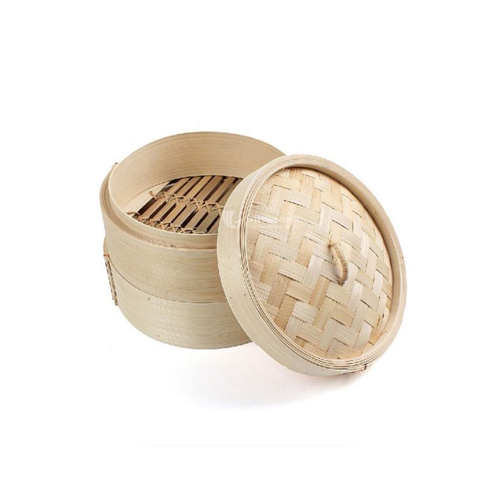 หม้อนึ่งอาหารทำมือจากไม้ไผ่ธรรมชาติ สำหรับเกี๊ยว ผัก อาหารทะเล - 2 ชั้น ความจุ 2 ลิตร ใช้ได้กับเตาแก๊สและเตาแม่เหล็กไฟฟ้า