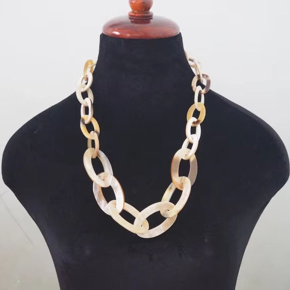 Handmade Polished Natural Buffalo Horn Chain Necklace Lightweight Oversized Oval Links Eco Friendly Love Tribal Statement
