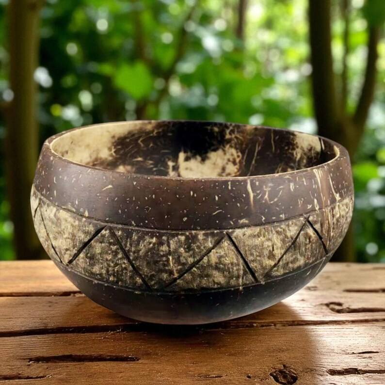ชามกะลามะพร้าวทำมือจากธรรมชาติ เป็นมิตรกับสิ่งแวดล้อม ใช้ซ้ำได้ เหมาะสำหรับสลัด สมูทตี้ ข้าว ผลไม้ และภาชนะบนโต๊ะอาหาร