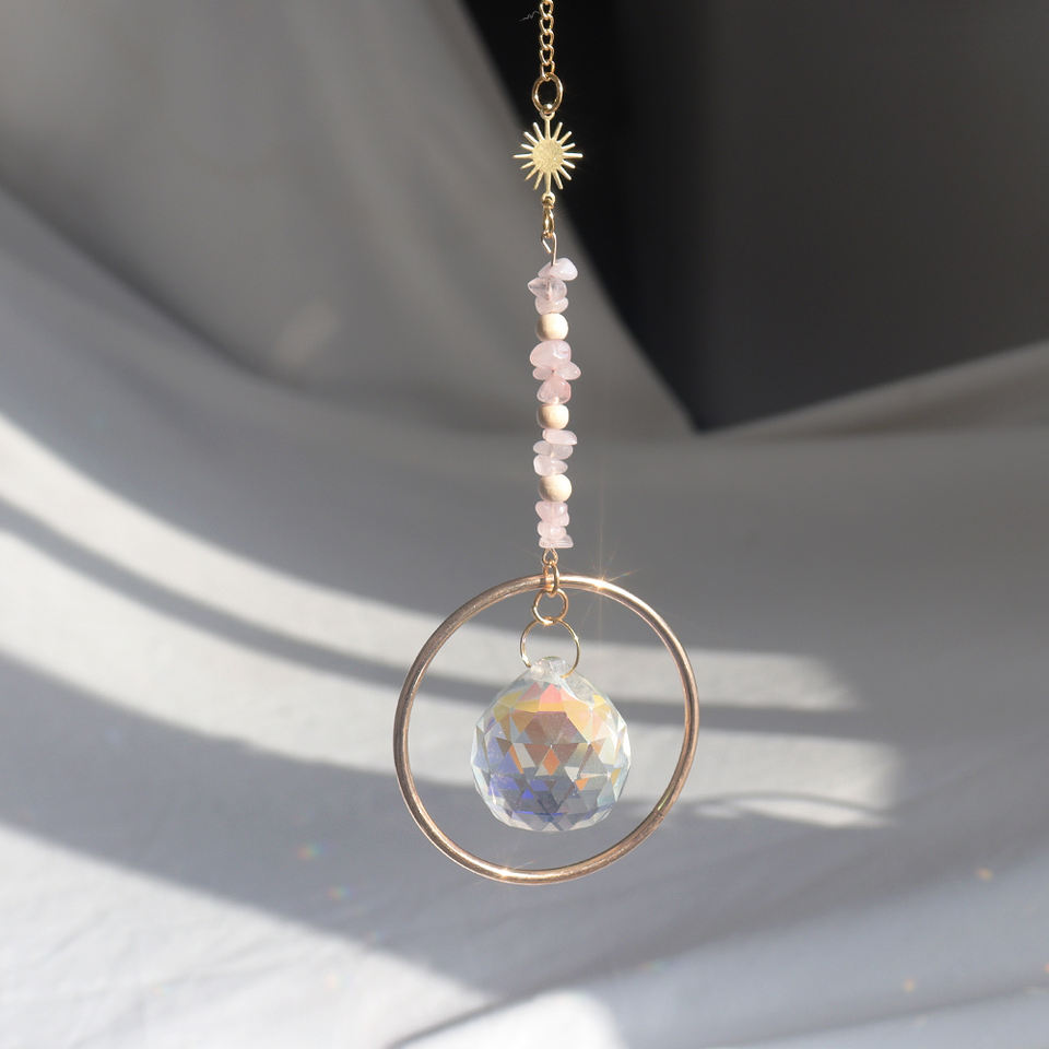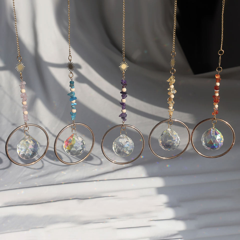 ลูกบอลคริสตัลธรรมชาติทำมือ สะท้อนแสงรุ้ง สำหรับตกแต่งหน้าต่างและสวนบ้าน สไตล์โบโฮ