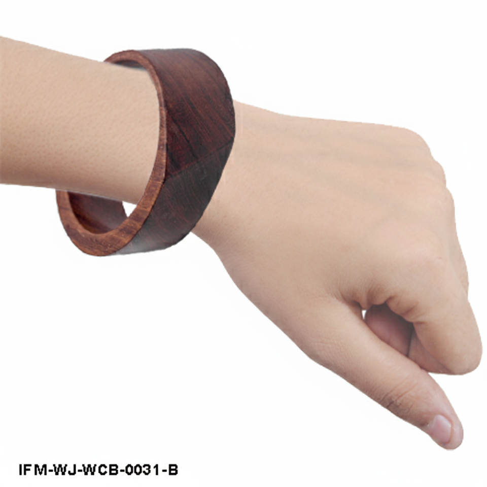 กำไลข้อมือไม้สีเข้มธรรมชาติทำมือ ดีไซน์โค้งรูปทรงเรขาคณิต สไตล์โบโฮ สำหรับผู้หญิง - ของขวัญรักษ์โลกสำหรับเธอ