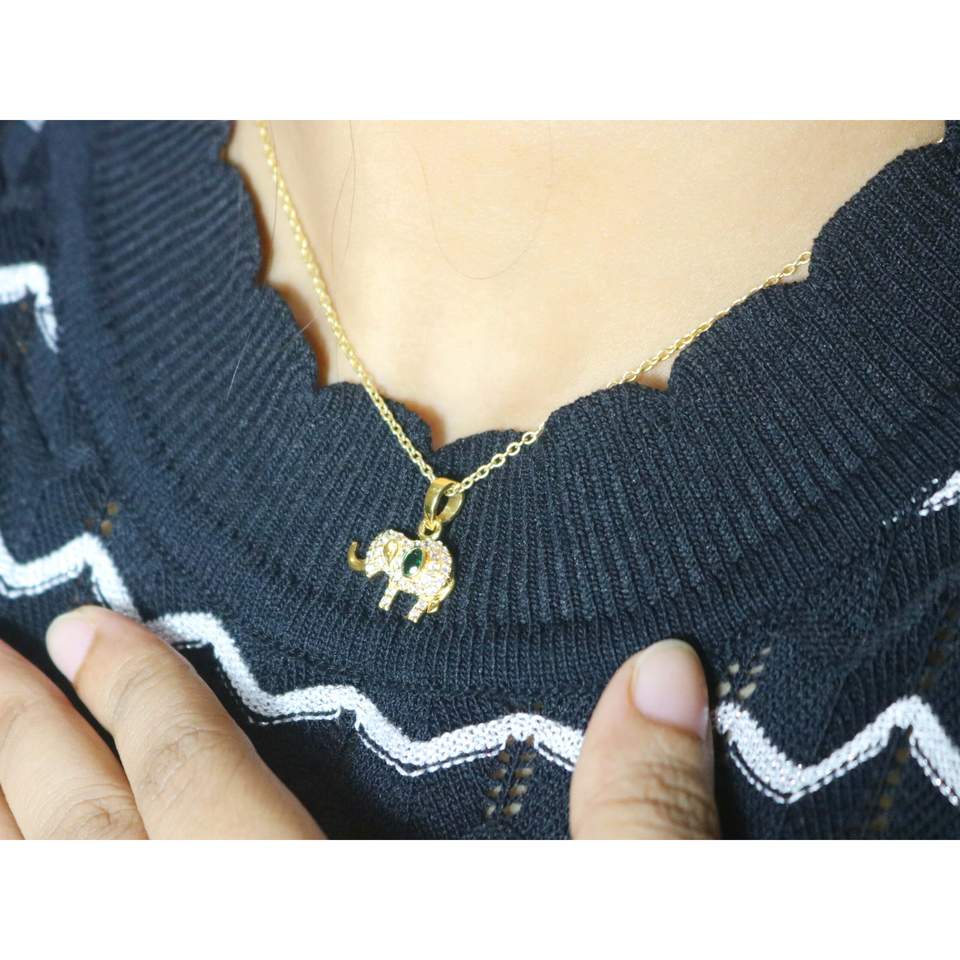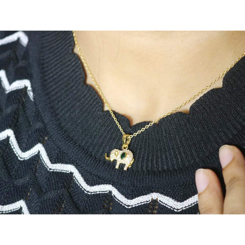 สร้อยคอจี้ช้างและเพชรธรรมชาติทำด้วยมือสีโรสโกลด์สไตล์ศาสนารูปแบบตัวเลขของขวัญทางศาสนาสำหรับผู้หญิง