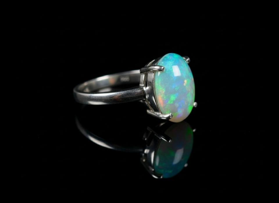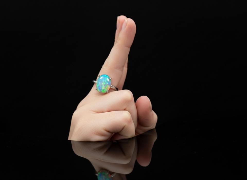 แหวนโอปอลทรงไข่เอธิโอเปียนธรรมชาติทำด้วยมือแหวนอัญมณีดีไซน์วินเทจเงินแท้925