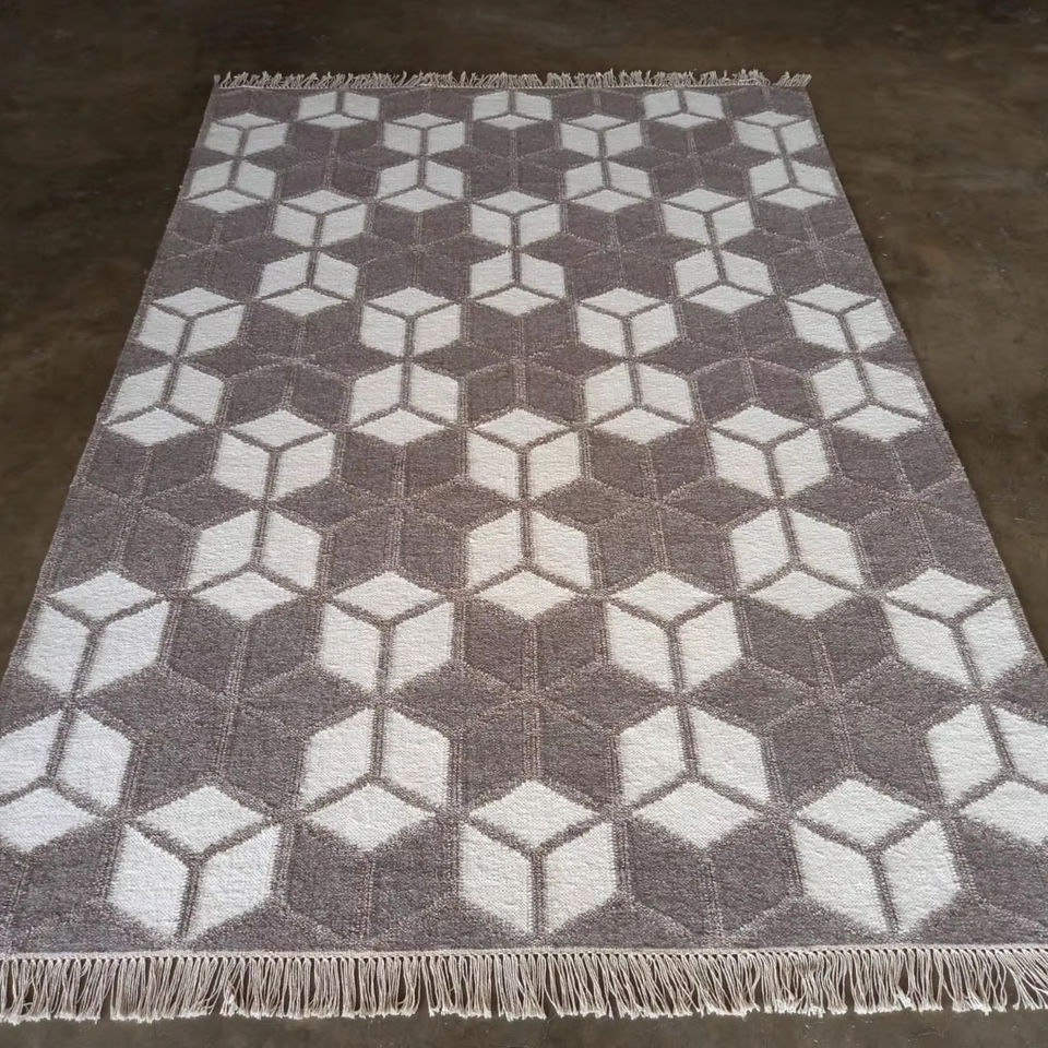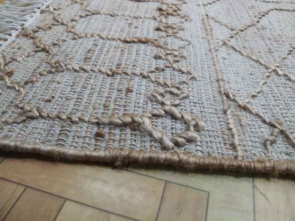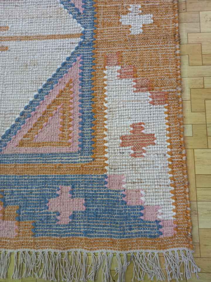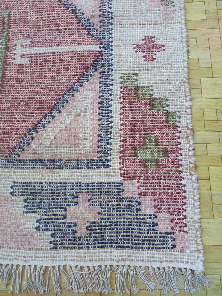 ปอกระเจาใยธรรมชาติทำด้วยมือพรมแบบผูกปมอินเดียลวดลายแอบสแตรกสวยงามปรับแต่งสีแดงขนาด5x8และ12x14