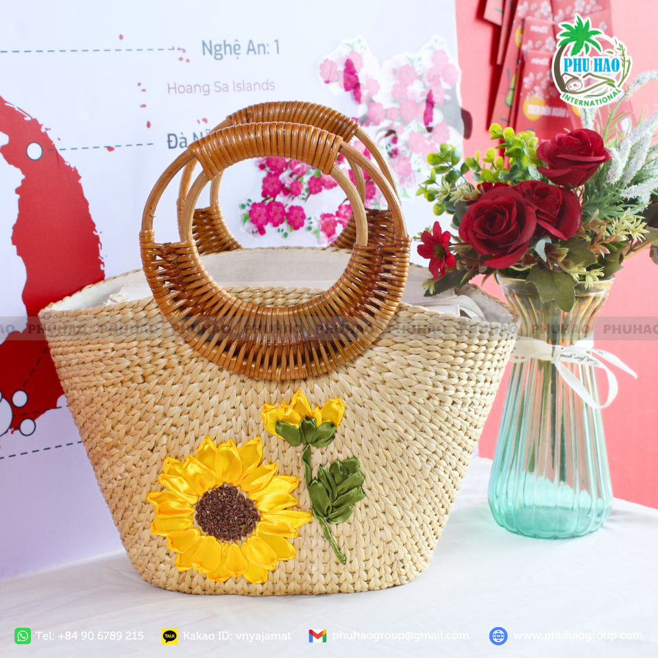 โท้ทใยธรรมชาติทำด้วยมือพร้อมด้ามไม้ไผ่ตัดแต่งลูกไม้และซับในผ้าลินินเพื่อความสง่างามแบบชนบทที่เป็นเอกลักษณ์