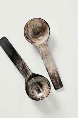 ช้อนฮอร์นธรรมชาติทำด้วยมือด้ามจับสไตล์นางฟ้าดีไซน์ยอดเยี่ยมสำหรับการปรุงรสน้ำตาลครัวด้วยงานฝีมือเสี้ยว