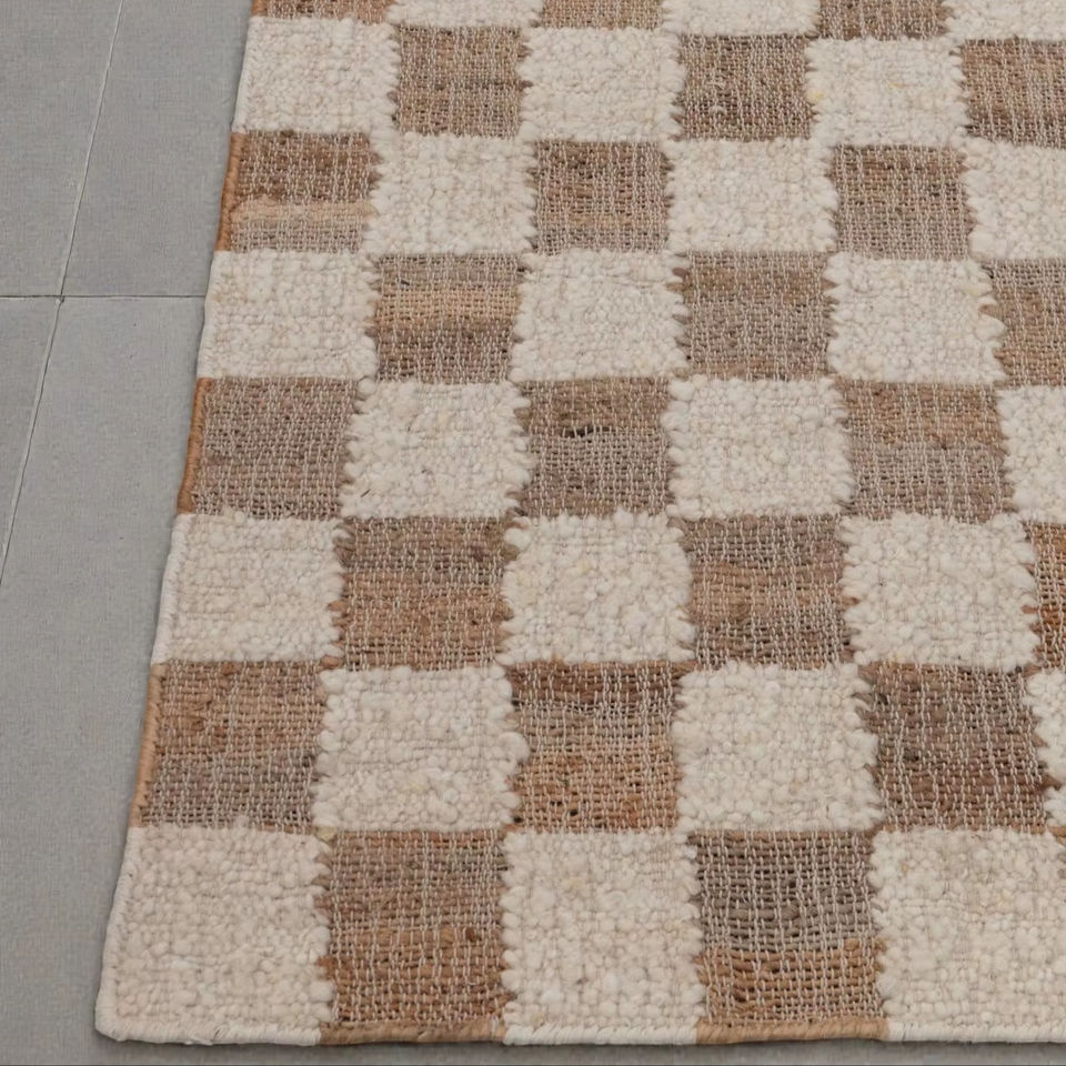 พรมปูพื้นทำมือจากปอกระเจาธรรมชาติ ลายแบบนามธรรม | พรมทอมือเป็นมิตรกับสิ่งแวดล้อม ป้องกันแบคทีเรีย ปลอดภัยสำหรับสัตว์เลี้ยง เหมาะสำหรับห้องนั่งเล่น ห้องนอน และบ้าน