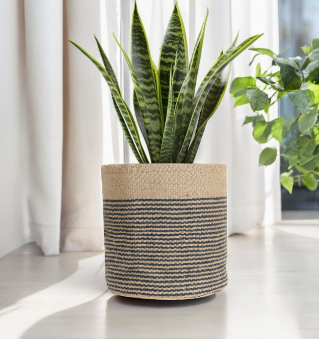 กระถางต้นไม้ทำมือจากเชือกปอธรรมชาติพร้อมขาไม้ สีตามสั่ง ใช้งานได้หลากหลายสำหรับตกแต่งห้องครัว ห้องน้ำ บ้าน และสวน
