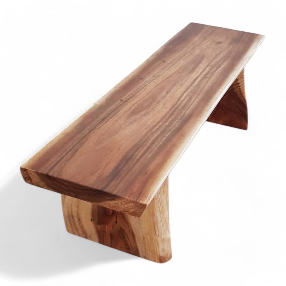 ม้านั่งเล่นยิมยาวขอบไม้จริงทำด้วยมือไม้กระดานแผ่นเดียวสำหรับห้องรับประทานอาหารภายนอกร้านอาหารทั้งสองเก้าอี้รับประทานอาหาร