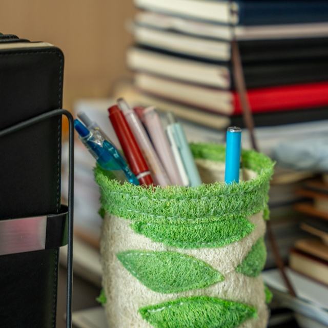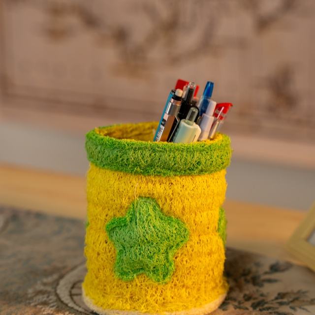 ที่ใส่ปากกาทำมือจากใยบวบธรรมชาติ ของตกแต่งโต๊ะทำงานสำหรับนักเรียน/สำนักงาน ทรงกระบอกสำหรับจัดเก็บของ ทรงกระบอกสำหรับจัดเก็บของสำหรับผู้ประกอบการ