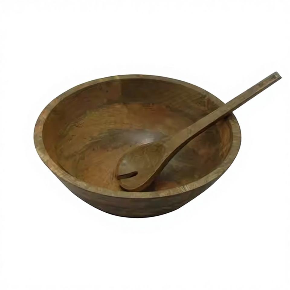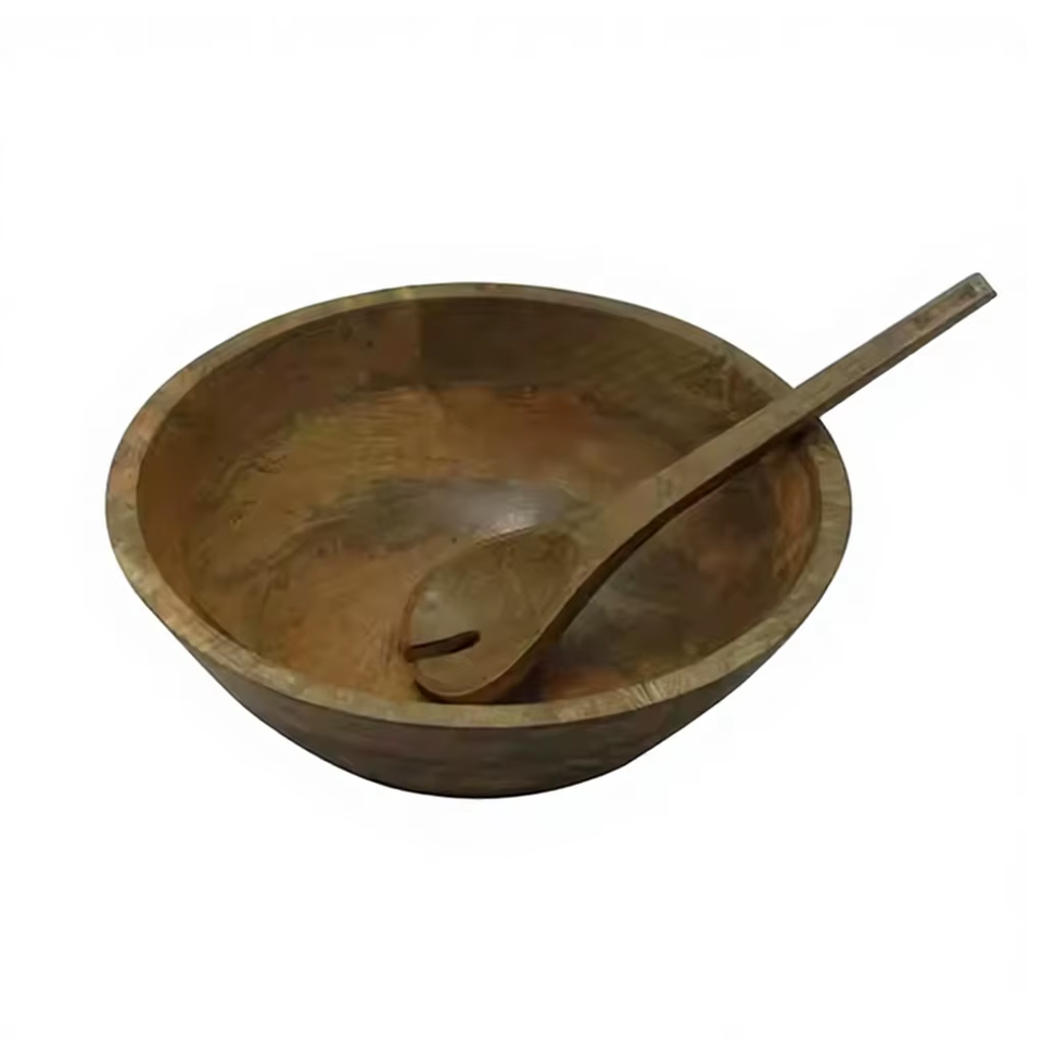 ชุดชามสลัดไม้มะม่วงทำด้วยมือทำจากธรรมชาติชุดใหญ่เครื่องใช้ในชามไม้สำหรับเสิร์ฟผักเป็นมิตรกับสิ่งแวดล้อม