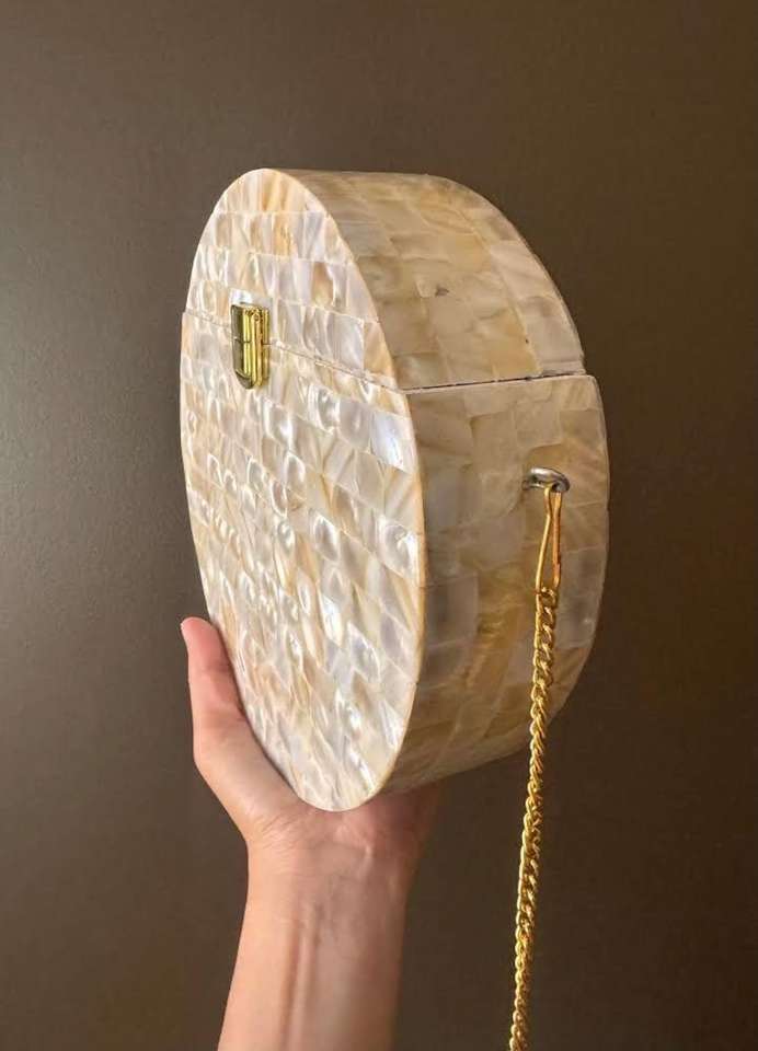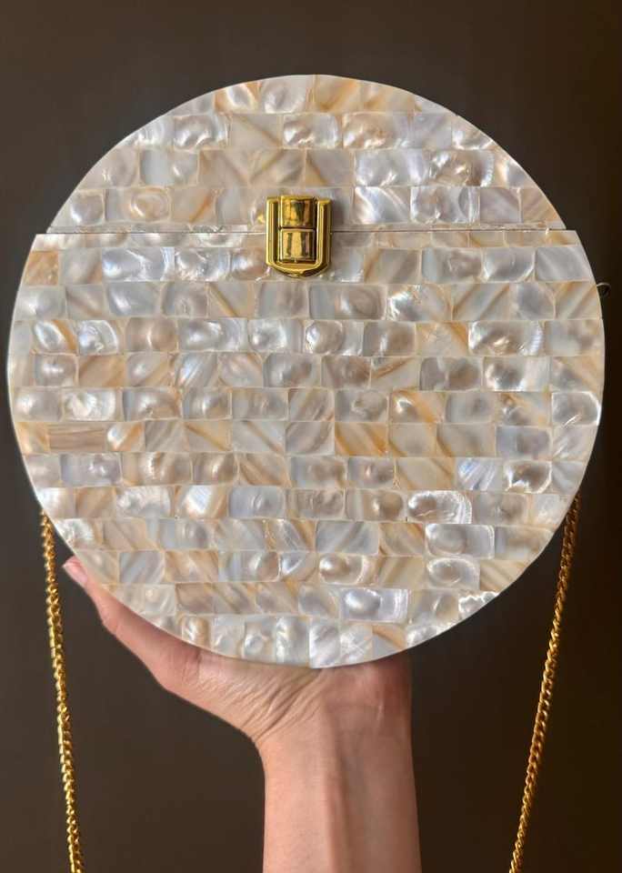Handmade Natural Mother of Pearl Clutch Elegant Gold Chain Strap Wedding Accessory