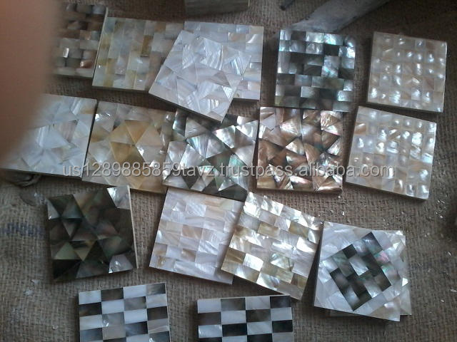 เสื่อและแผ่นรองแก้วลายมุกธรรมชาติทำด้วยมือ