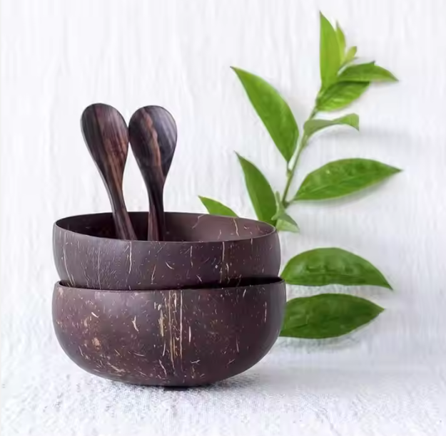 ชุดช้อนและชามสลัดปั่นเปลือกมะพร้าวธรรมชาติทำด้วยมือพร้อมฝาปิดขายส่งจากเวียดนามสำหรับคริสต์มาส
