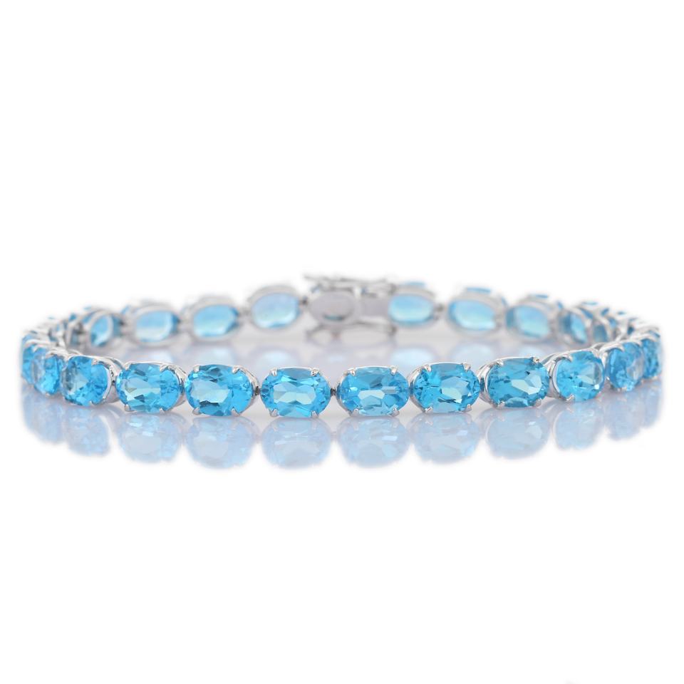 สร้อยข้อมือเทนนิสบุษราคัมธรรมชาติทำด้วยมือสีฟ้าทองขาวทันสมัยเครื่องประดับออกแบบได้เองสำหรับงานแต่งงานสินค้าขายส่ง