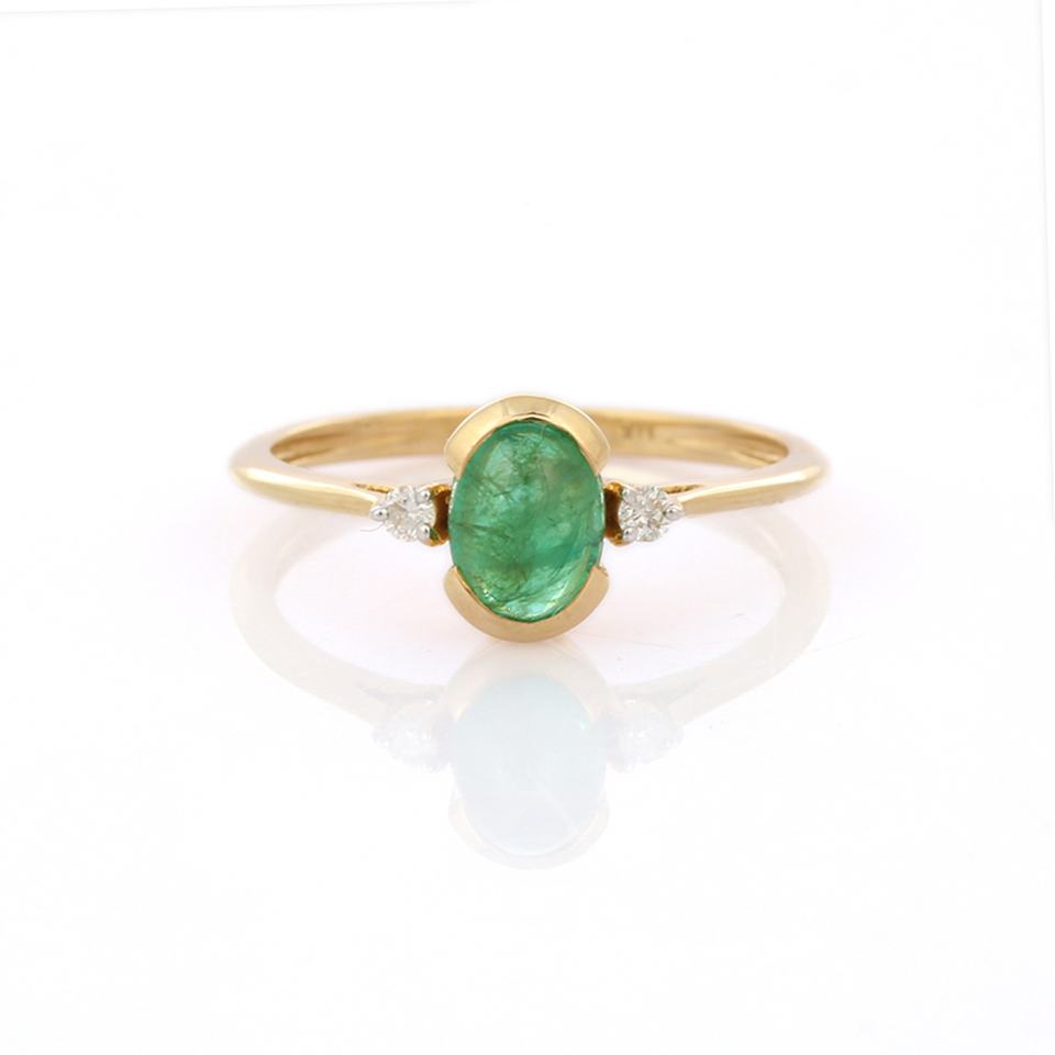 มรกตวงรีธรรมชาติทำด้วยมือพร้อมแหวนเพชรกลมตัด K14แหวนพลอยทองคำสีเหลืองเข้มเครื่องประดับที่ดีของขวัญแต่งงานแขก