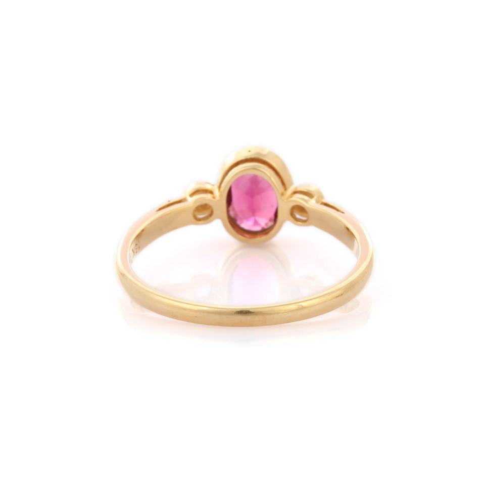 ทัวร์มาลีนรูปวงรีทำด้วยมือพร้อมแหวนเพชรพลอยเจียระไนทรงกลม18K แหวนเพชรเม็ดเดี่ยวสีเหลืองทองเครื่องประดับแฟชั่น