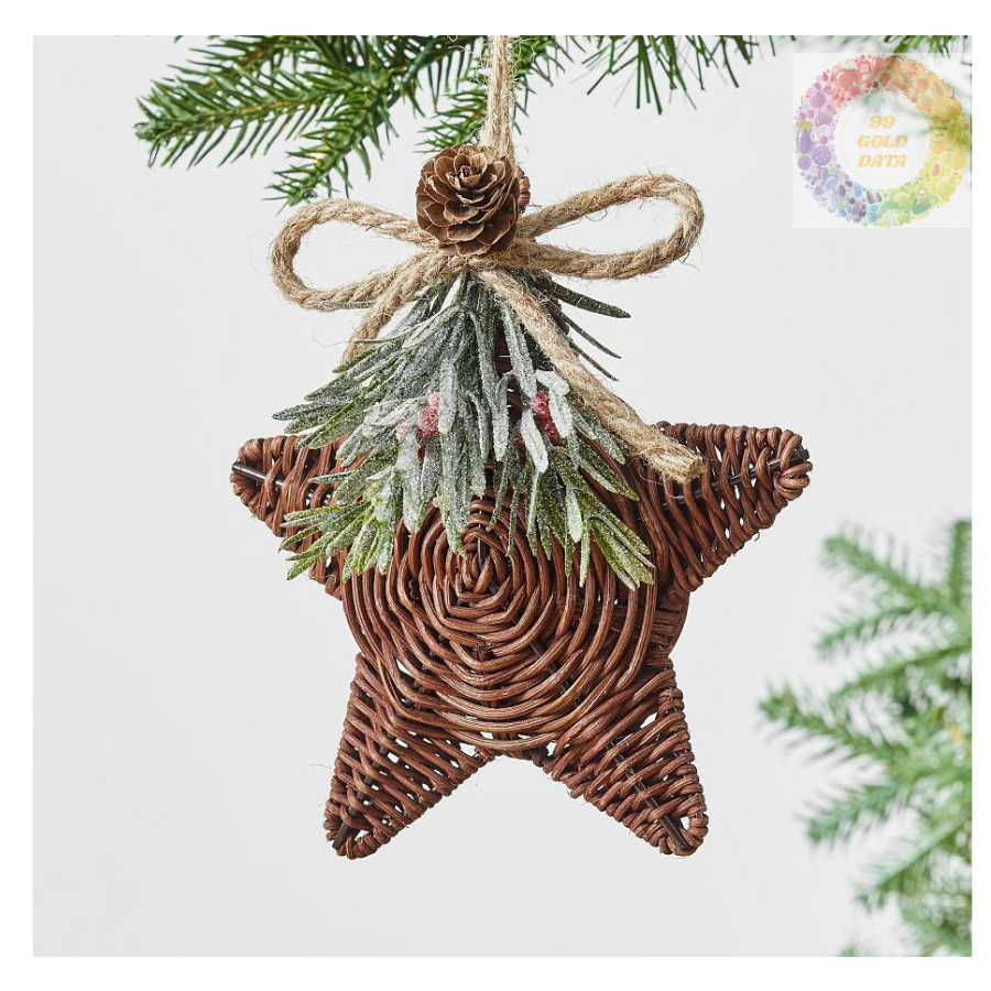 กระดิ่งหวายธรรมชาติทำมือเครื่องประดับคริสต์มาสสำหรับแขวนต้นไม้วันหยุดแบบชนบทและของตกแต่งกล่องของขวัญ