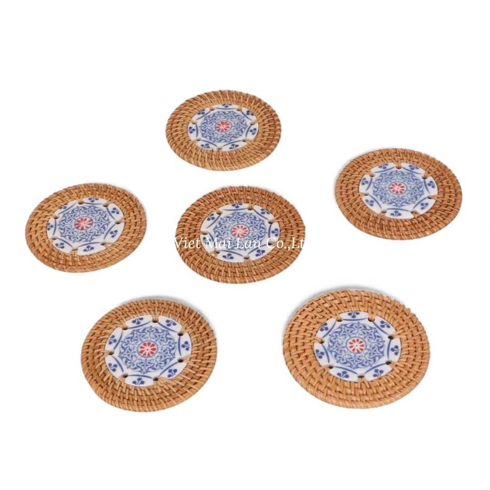 ที่รองแก้วหวายธรรมชาติทำมือ สำหรับป้องกันแก้วและถ้วย พร้อมตกแต่งโต๊ะอย่างมีสไตล์