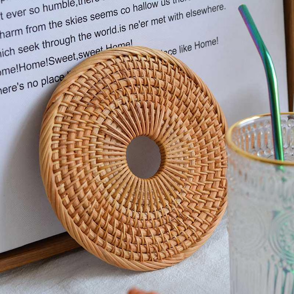 ชื่อผลิตภัณฑ์:จานรองแก้วหวายธรรมชาติทำด้วยมือชุด6ชิ้น