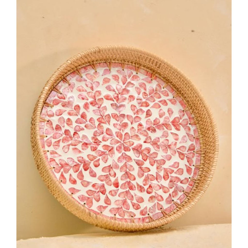 ถาดเสิร์ฟทรงรีทำจากหวายธรรมชาติทำด้วยมือลายดอกไม้พร้อมฝังมุกแม่หรูหราตกแต่งบ้านห้องครัวสำเนียง