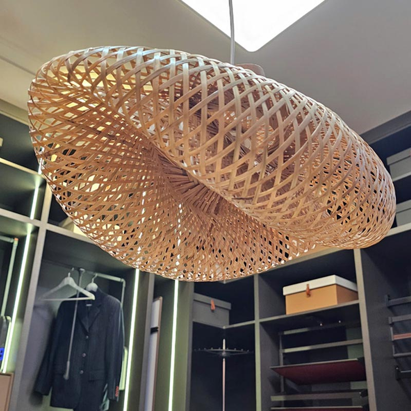โคมไฟหมวกฟางหวายธรรมชาติทำด้วยมือดีไซน์มินิมอลสำหรับโคมไฟระย้าและเพดาน