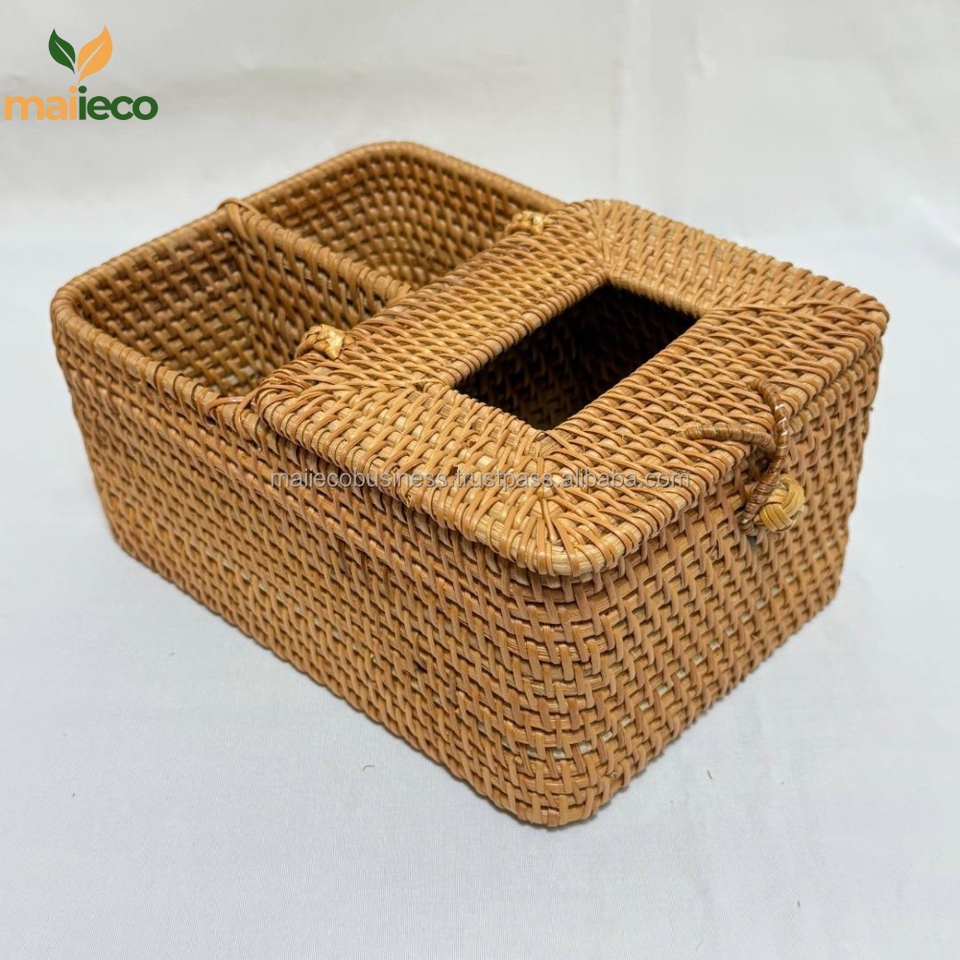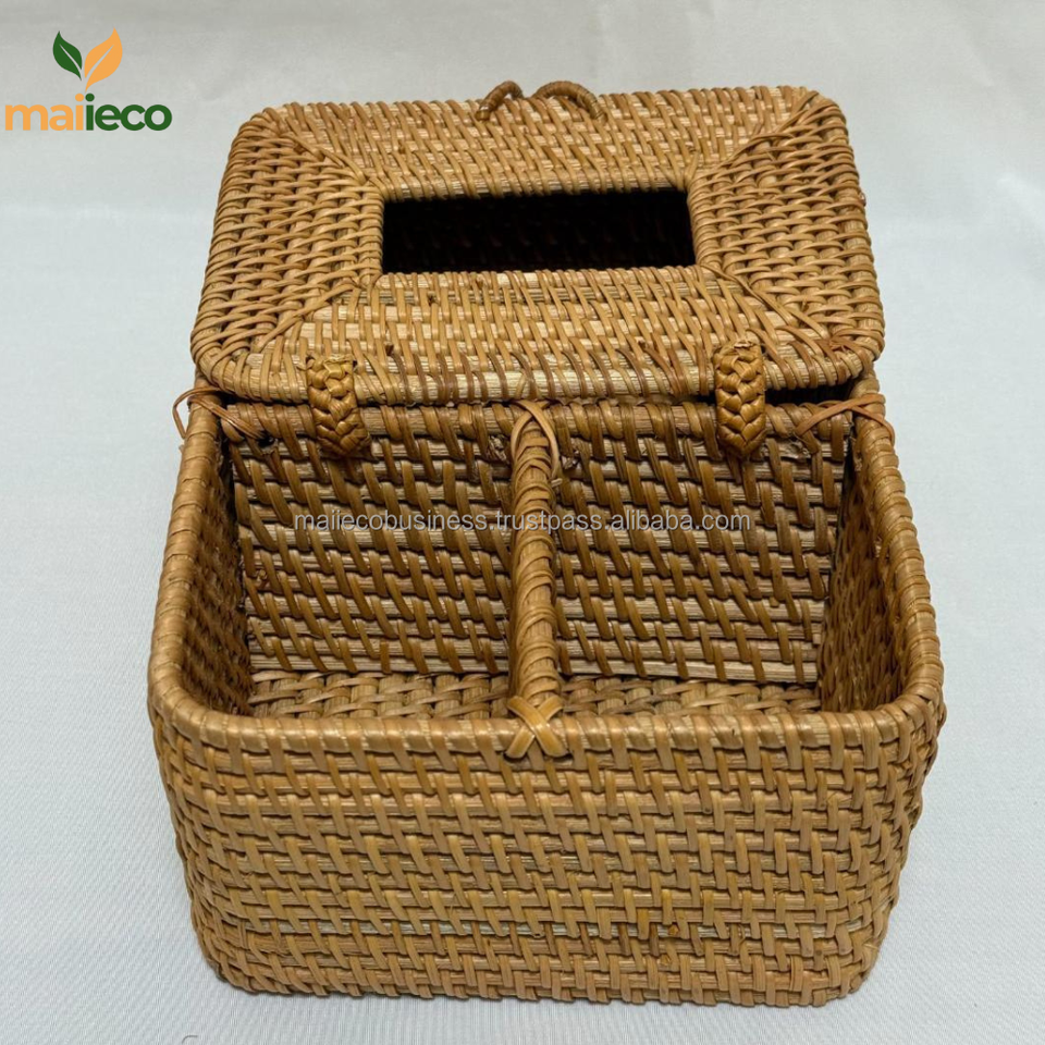 ตะกร้าหวายสานทรงสี่เหลี่ยมทำด้วยมือสไตล์วินเทจสำหรับงานซักรีดของขวัญขึ้นบ้านใหม่ในห้องครัว