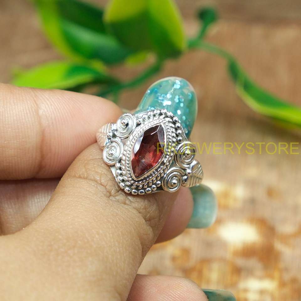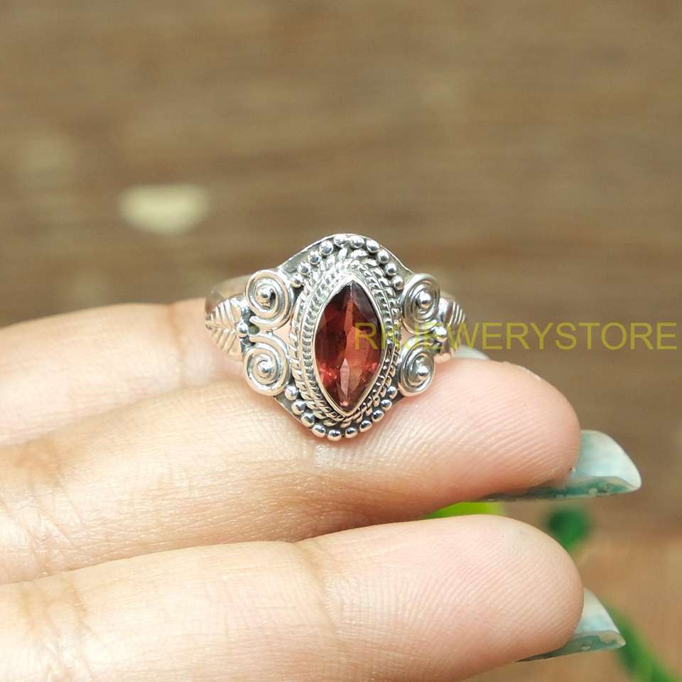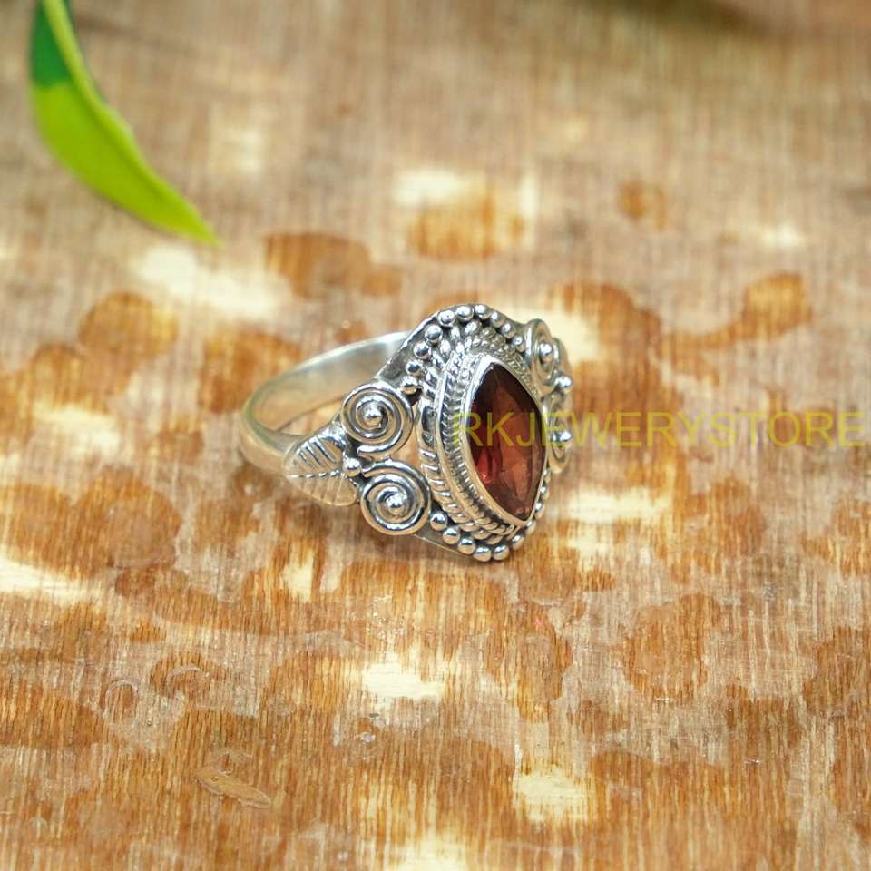 แหวนเงินแท้ 925 ประดับพลอยโกเมนสีแดงธรรมชาติ ทำมือ สไตล์โบฮีเมียน สำหรับผู้หญิง ดีไซน์วินเทจลายชนเผ่า