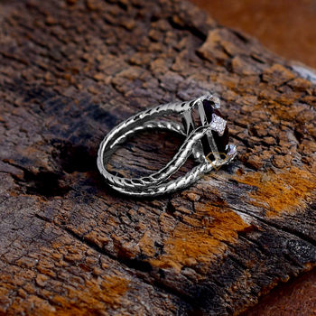925พลอยควอทซ์สโมคกี้ธรรมชาติทำด้วยมือแหวนเงินสเตอร์ลิง/เบาะรูปทรงเครื่องประดับแหวนดีไซน์เนอร์สำหรับขายส่ง