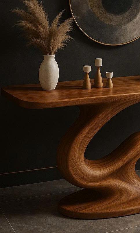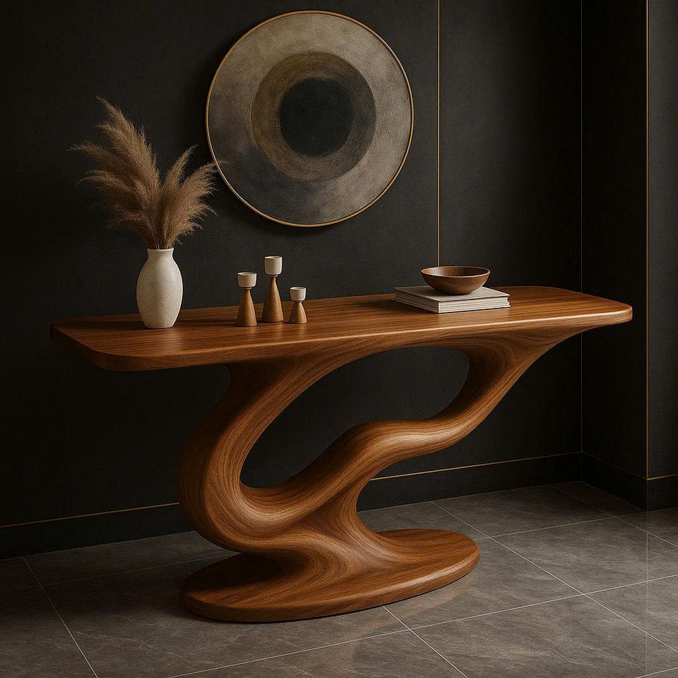 โต๊ะไม้เนื้อแข็งทำด้วยมือทำจากไม้ธรรมชาติโต๊ะวางบนโต๊ะแบบทันสมัยสำหรับห้องนั่งเล่นและทางเข้าบ้านโต๊ะคอนโซลทำจากไม้เนื้อแข็งโค้ง