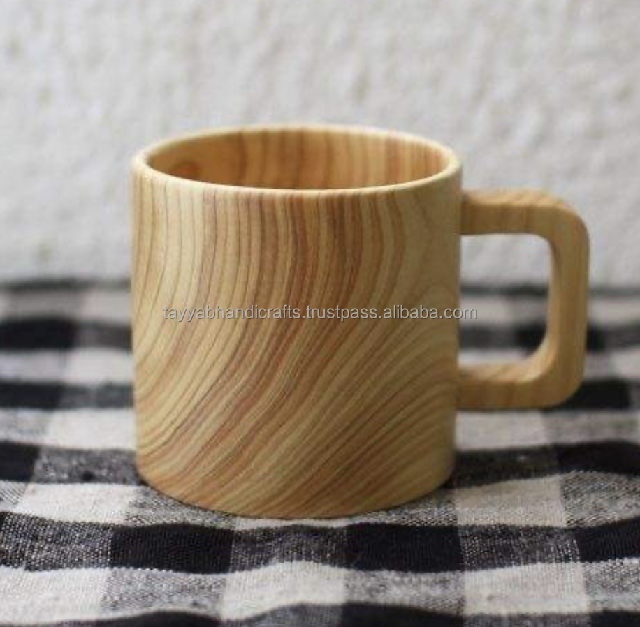 แก้วไม้สนธรรมชาติทำมือ ทรงใหญ่ สำหรับครัว บาร์ ใช้ดื่มเบียร์ ชา กาแฟ นม น้ำ