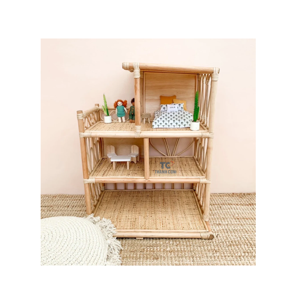 ทําด้วยมือสไตล์ธรรมชาติหวายบ้านตุ๊กตาของเล่นเด็ก Miniatures บ้านหวายขนาดเล็กสําหรับตกแต่งห้องเด็กเล่น