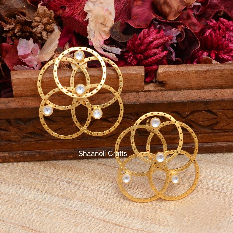 ต่างหูทองเหลืองทรงเรขาคณิตชุบทองธรรมชาติทำด้วยมือเครื่องประดับงานปาร์ตี้สำหรับงานแต่งงานเครื่องประดับมุกรูปทรงกลมสำหรับผู้หญิง