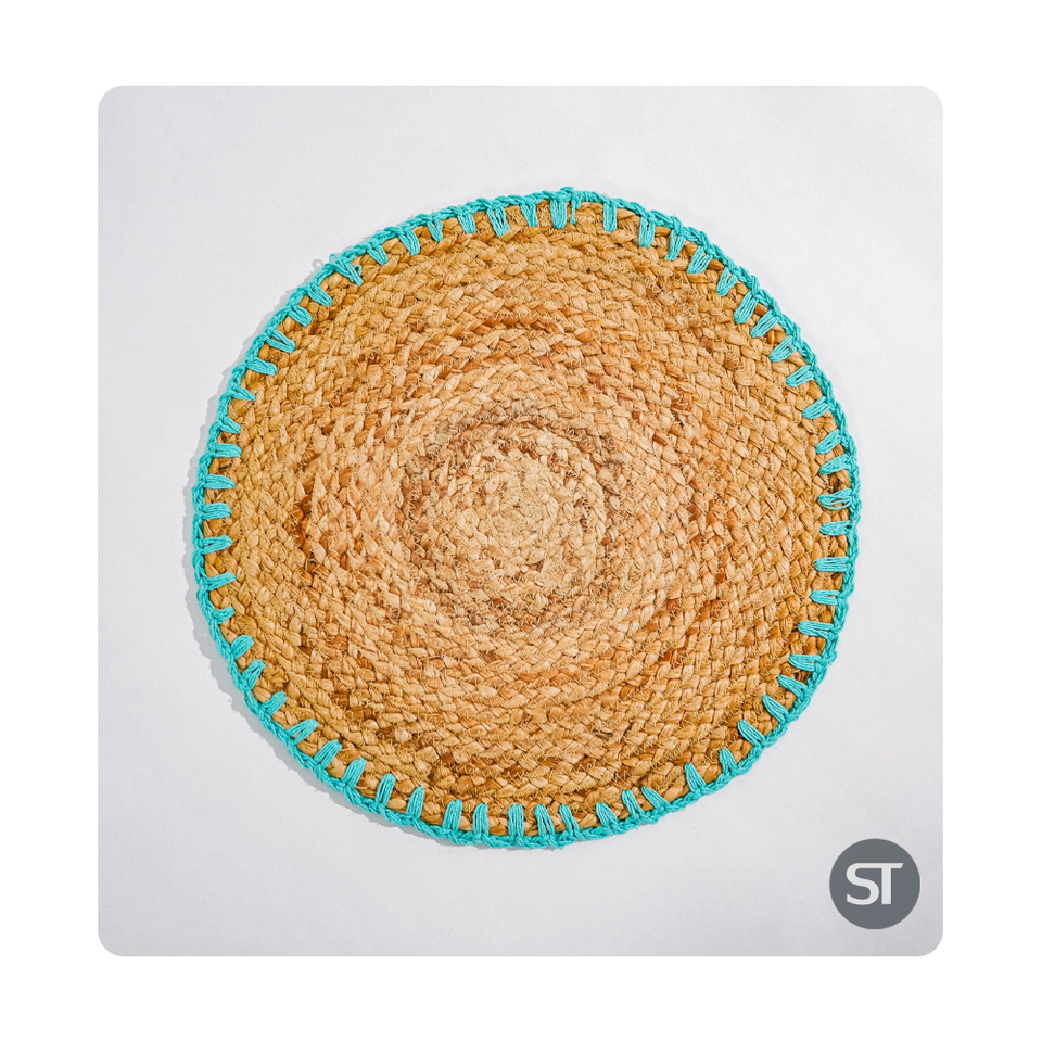 Handmade Natural Teal Blue Braided Jute Placemats 5mm 40x40cm Customizable Classic Rustic Dining Tableware Decor Bulk Supply