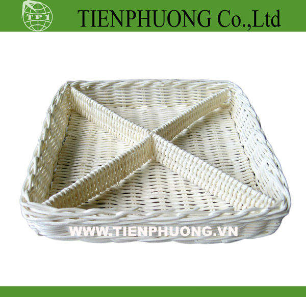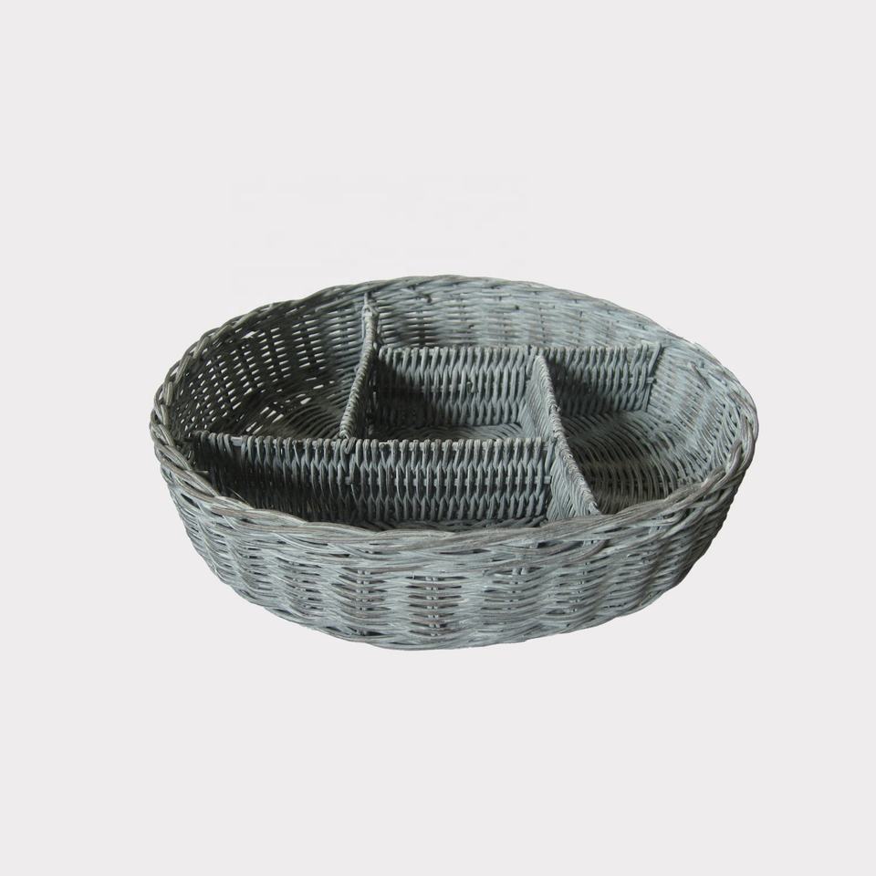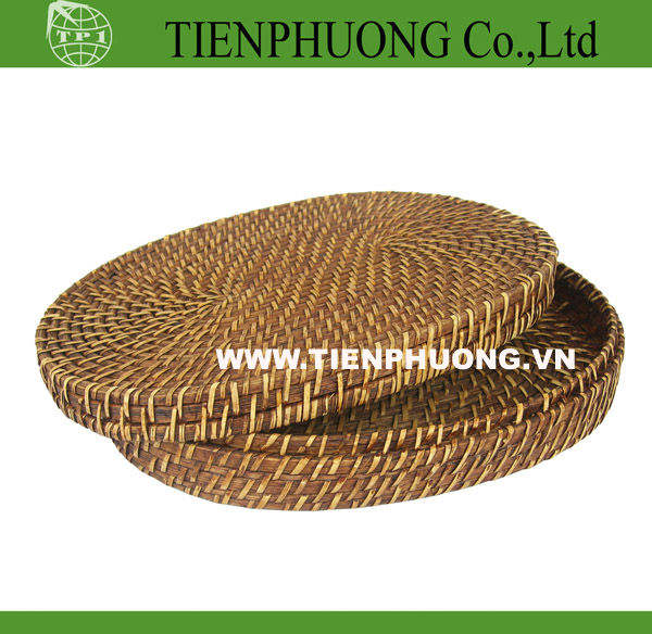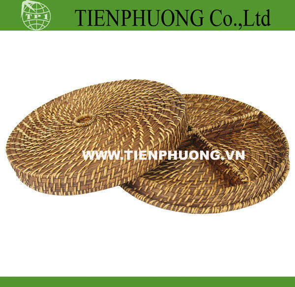 ถาดเสิร์ฟไม้ไผ่หวายธรรมชาติทำมือ ถาดขนมทรงกลมสำหรับจัดเก็บในบ้าน ครัว วันหยุด ตะกร้าหวาย ผลิตในเวียดนาม