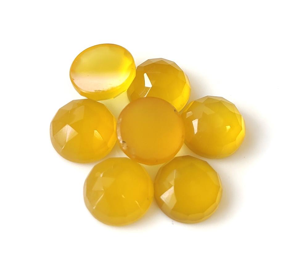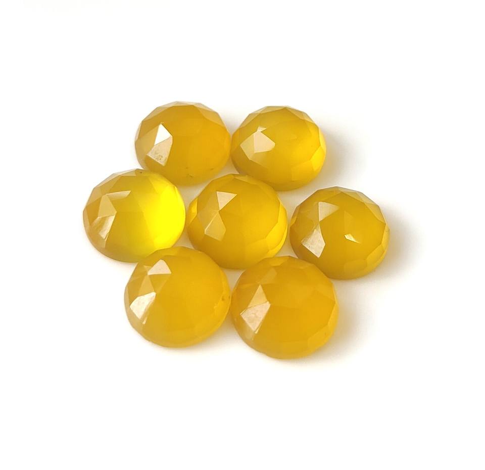 พลอยคาลซิโดนีสีเหลืองธรรมชาติทำด้วยมือขนาด3-30มม. ตัดดอกกุหลาบอัญมณีหลังแบนแบบหลวมสำหรับทำเครื่องประดับ