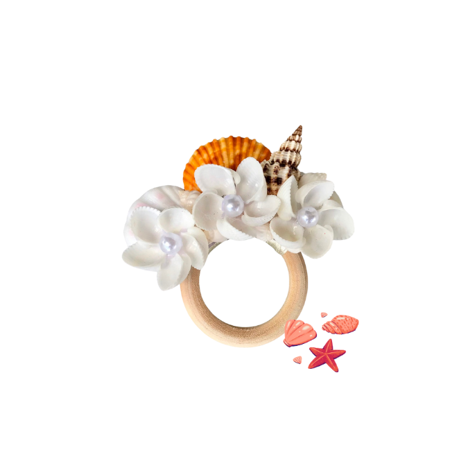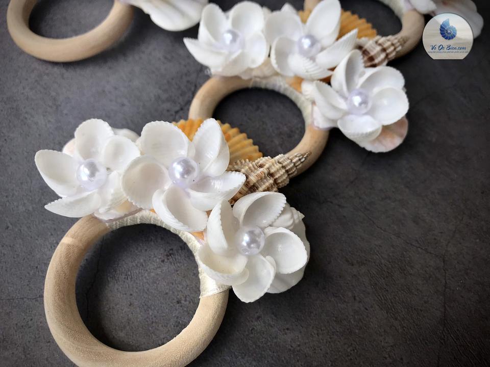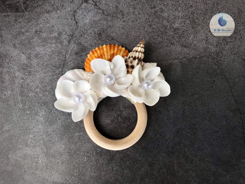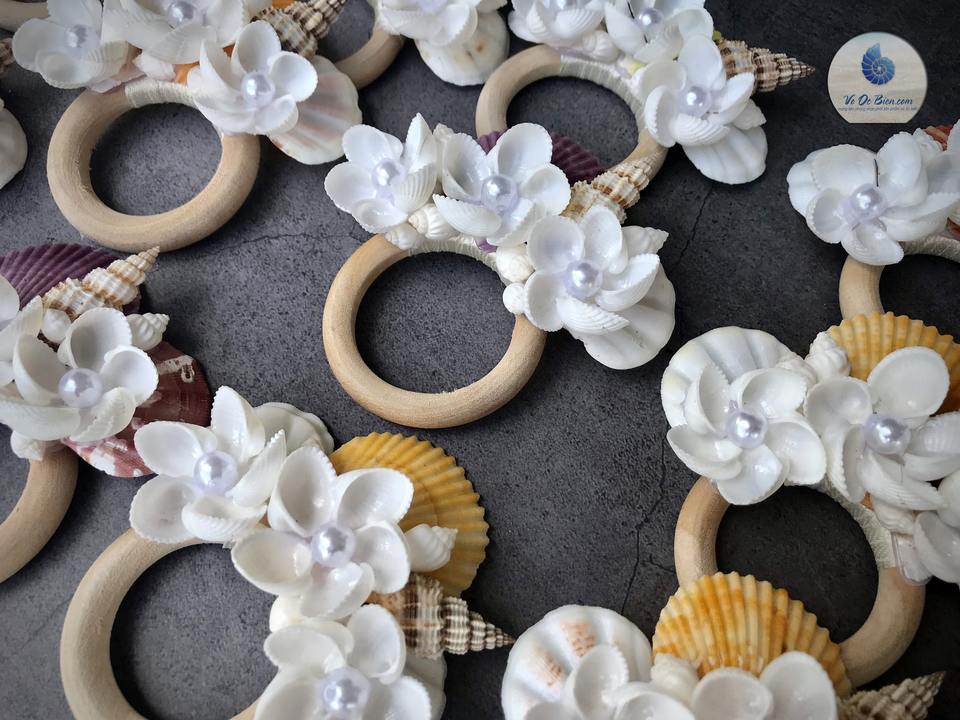 แหวนรองผ้าเช็ดปากเปลือกหอยธรรมชาติทำมือ และที่ใส่ผ้าเช็ดปากจากวัสดุธรรมชาติ ดีไซน์งานหวายขัดเงา เป็นมิตรกับสิ่งแวดล้อม จากเวียดนาม