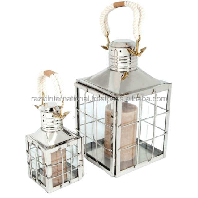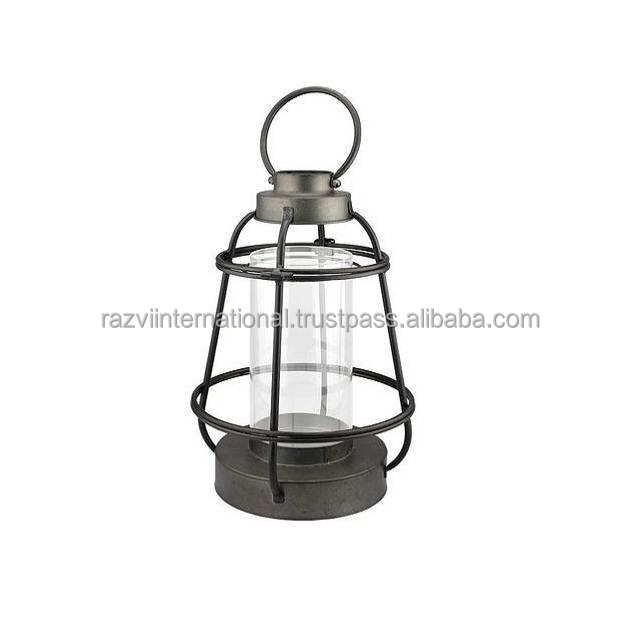 โคมไฟโลหะเคลือบผงเหล็กเคลือบผงสีขาวทำด้วยมือเชิงเทียนและตะเกียง