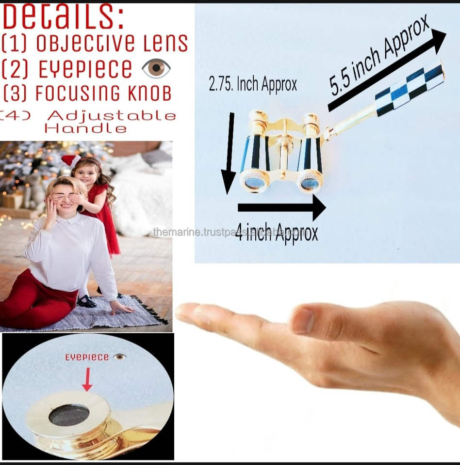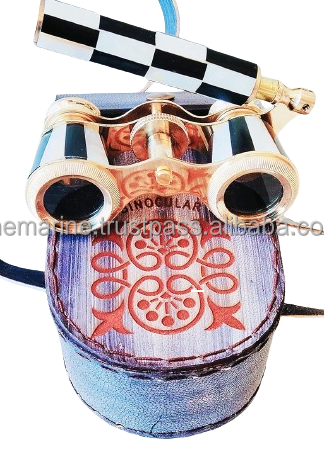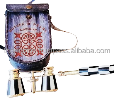 HandmadeเดินเรือVINTAGE MINIแม่มุกโอเปร่าแก้วกล้องส่องทางไกลพร้อมหนังแกะสลัก